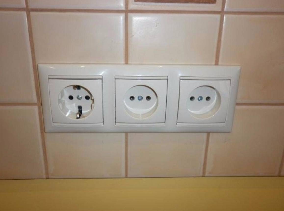 - устанавливать розетки нужно не менее, чем в полуметре от заземленных частей (трубы, раковины, батареи);