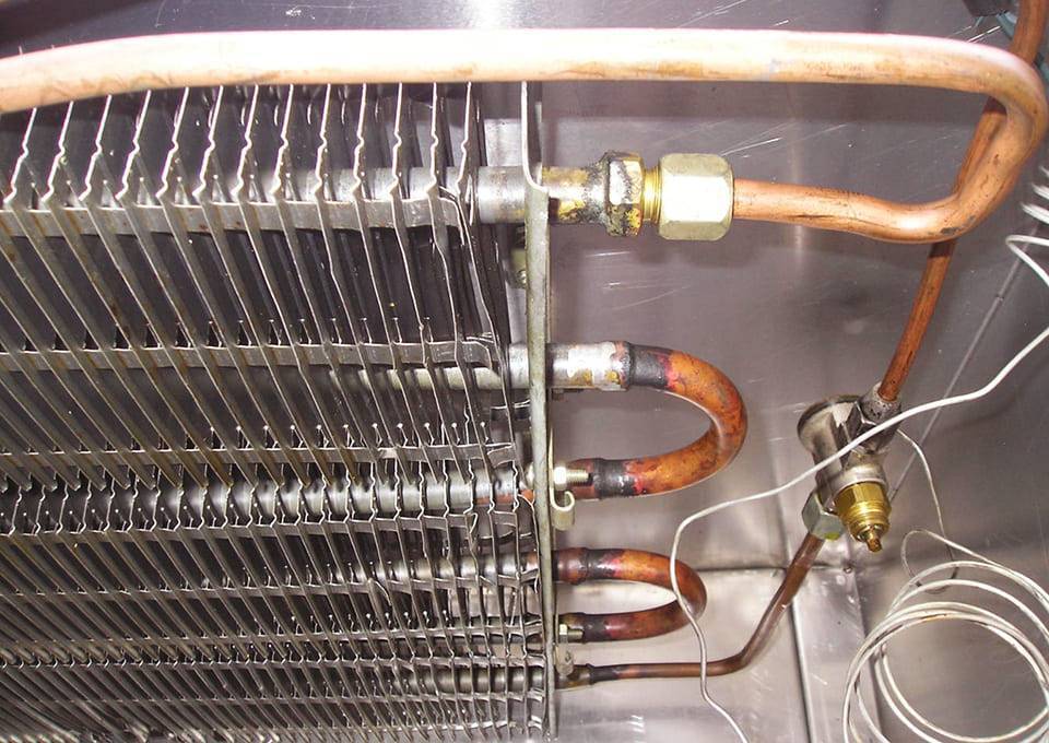 касание трубок прочих деталей агрегата – при этом дребезжание сопровождает стук. Просто труба, ведущая фреон, прикасается к кожуху или раме компрессора. Если проигнорировать этот момент, продолжительное трение вызовет прореху и утечку фреона. Требуется осмотр капиллярных, всасывающих, нагнетательных трубок, – только так можно углядеть участки касания