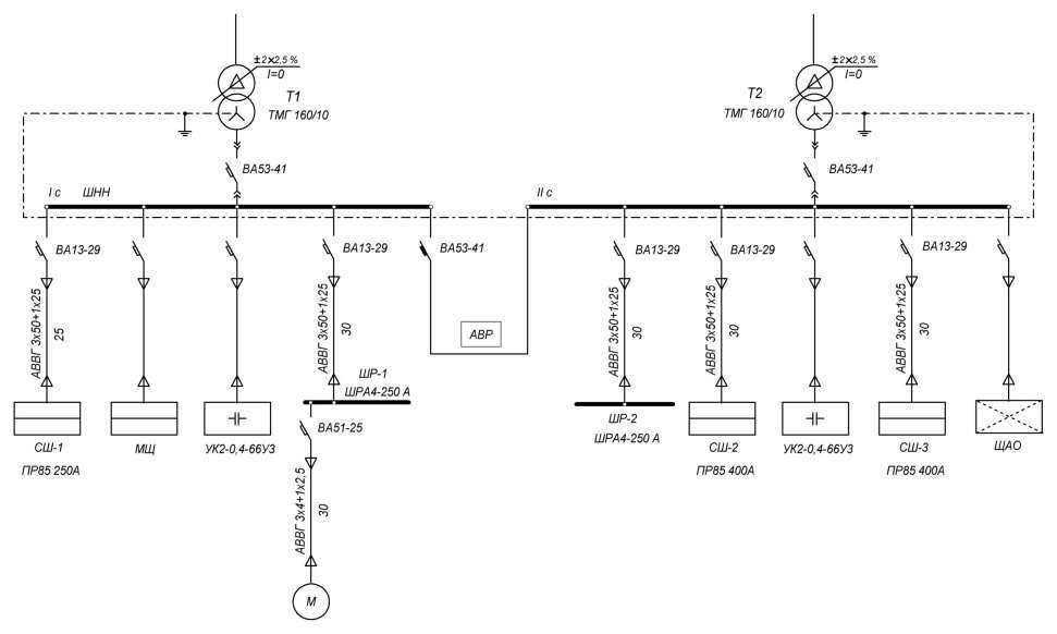 Исполнительная схема 2-трансформаторной подстанции