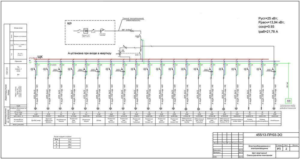 Расчётная схема квартирного щита загородного дома