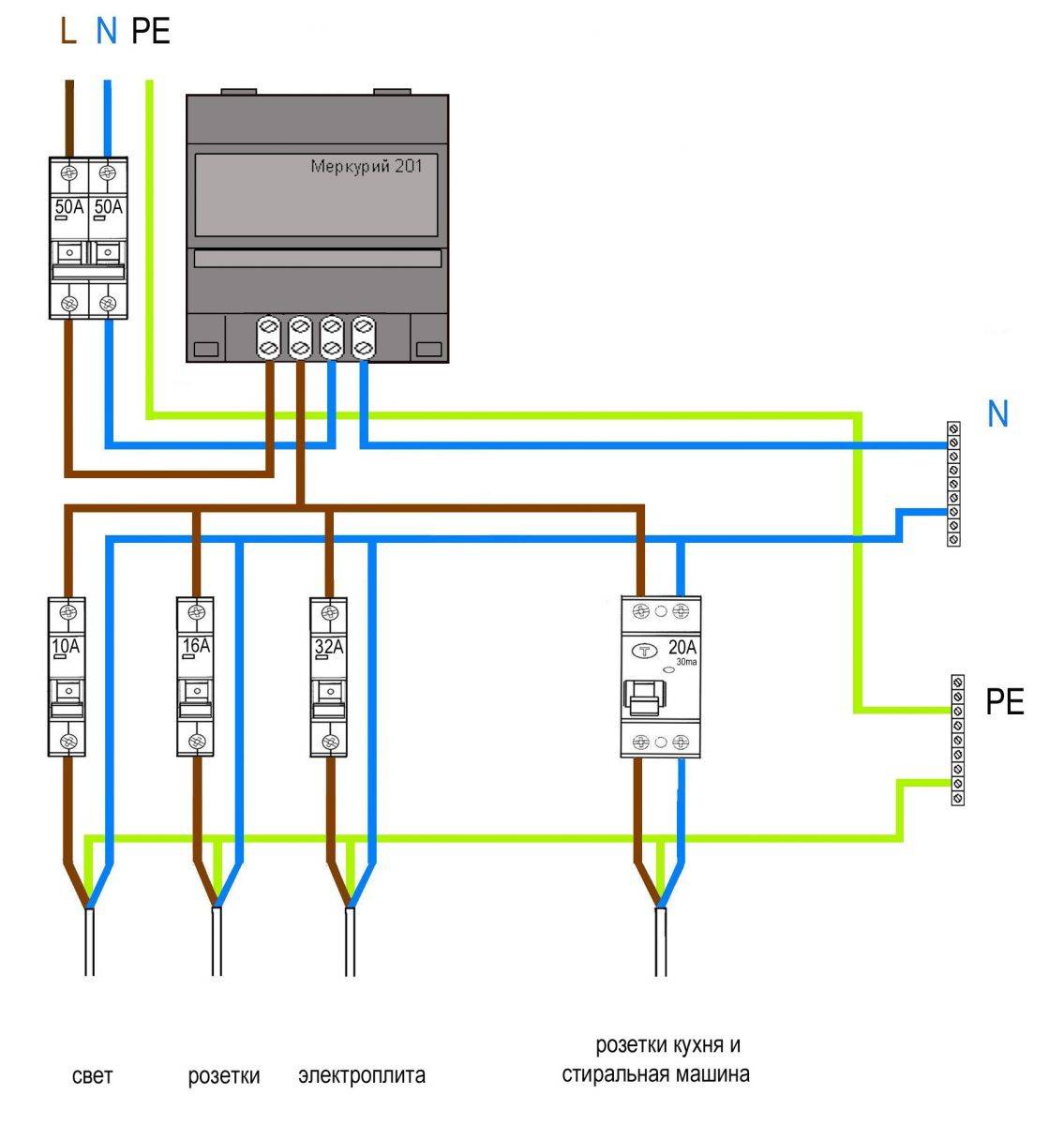 Схема подключения однофазного счетчика
