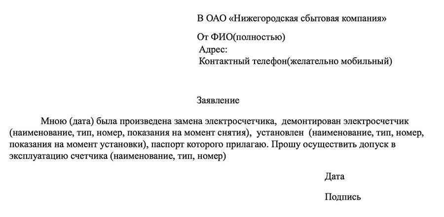 При посещении поставщика энергоресурсов нужно подать заявку на опломбировку электросчётчика, в которой следует указать: