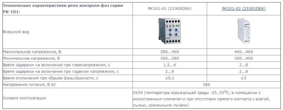 Реле напряжения создаются под заданный температурный диапазон эксплуатации. Например, изделия, рассчитанные на температуру от -5° до 40°С, запрещается ставить в уличные щитки. Установленные на корпусе контактные площадки позволяют закрепить медный кабель ограниченного сечения. Еще одним важным параметром является ресурс контактной группы, определяющий срок службы изделия. Примеры технических параметров реле напряжения приведены в таблице.