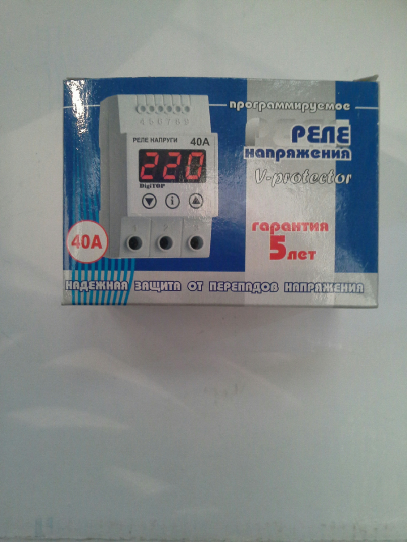 На фото приведено реле напряжения Digitop, в качестве отзыва могу сказать, что подключал такие несколько раз, проблем не было.
