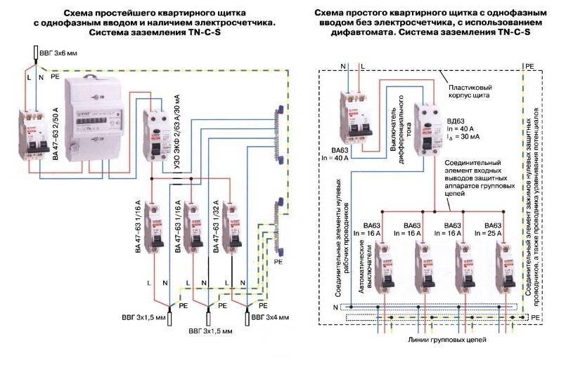 Схема электрощита для многокомнатной квартиры будет выглядеть примерно так (схема слева):
