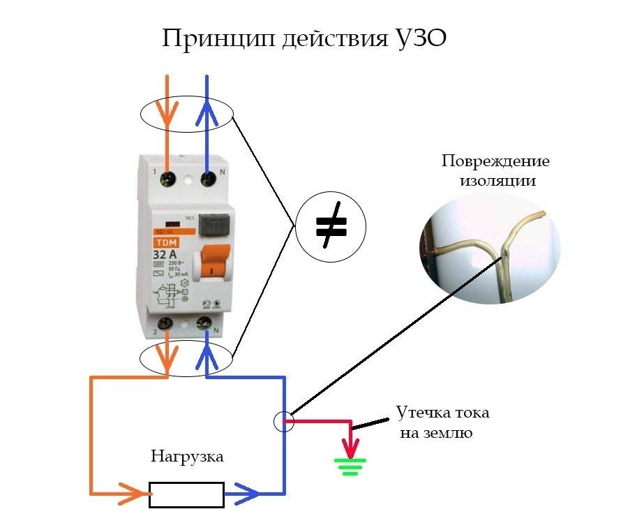 Принцип работы УЗО в однофазной сети обуславливает особенности его подключения