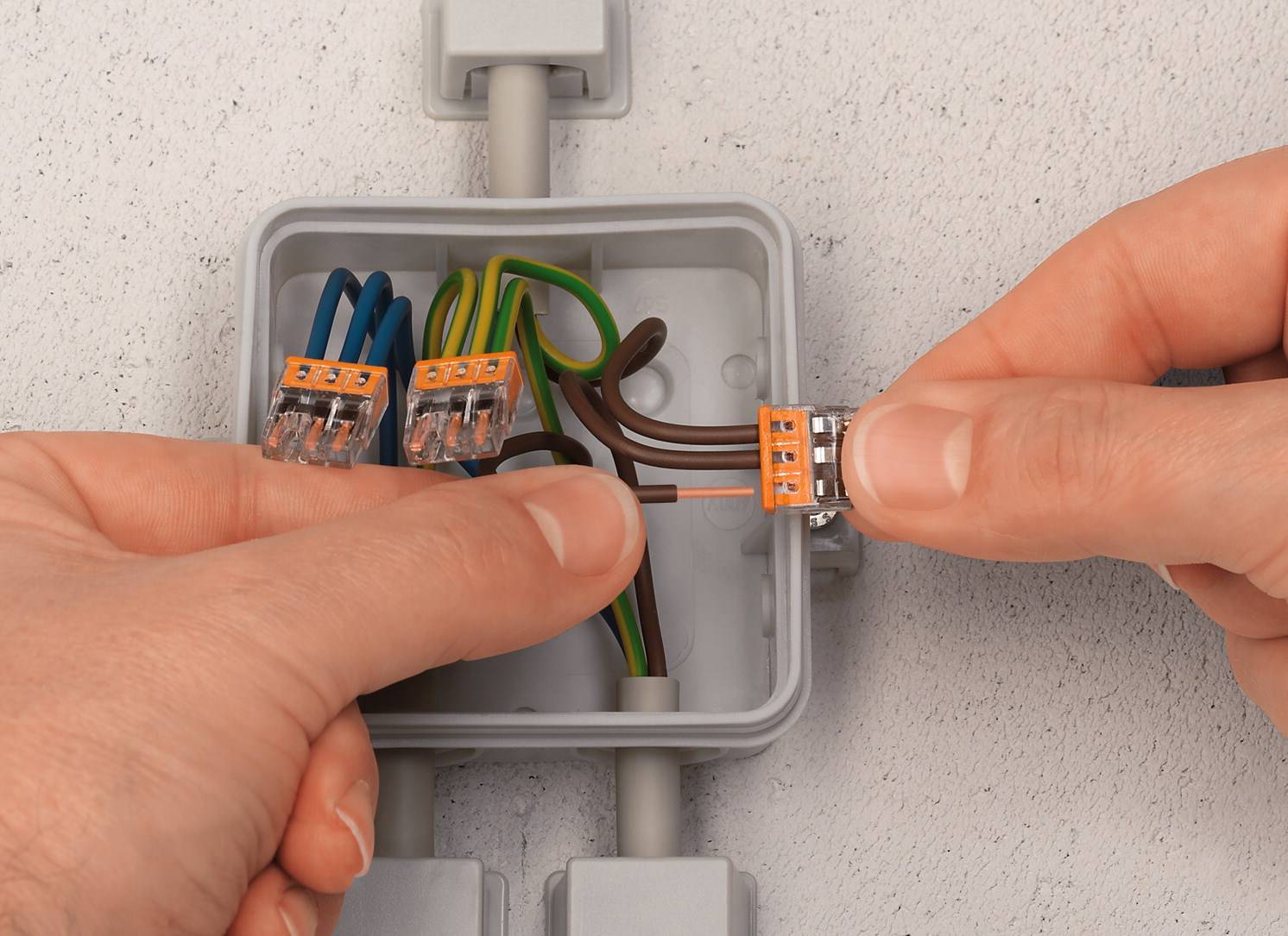 Поэтому альтернативой описанному выше способу может стать монтаж электрических проводов с помощью специальной изоляционной коробки. Для соединения проводов в ней потребуется всего лишь отвёртка. Сама коробка – приспособление компактное, некоторые модели меньше розеток, внутри них располагаются клеммы. Основная задача – правильно состыковать между собой провода. Поэтому внутри коробки каждый контакт производитель обозначает буквами или значками. Так что ошибиться вряд ли получится.