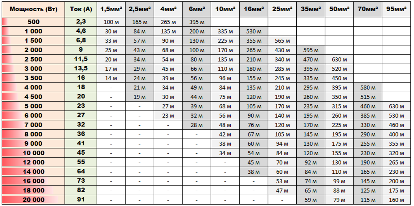Для расчета общей мощности потребления и необходимой для этого электропроводки дома необходимо просуммировать киловатты всех бытовых и осветительных приборов в жилище. Данные параметры есть в техпаспортах на оборудование и в специальных таблицах. Плюс сюда добавляются пусковые нагрузки и 20% про запас.