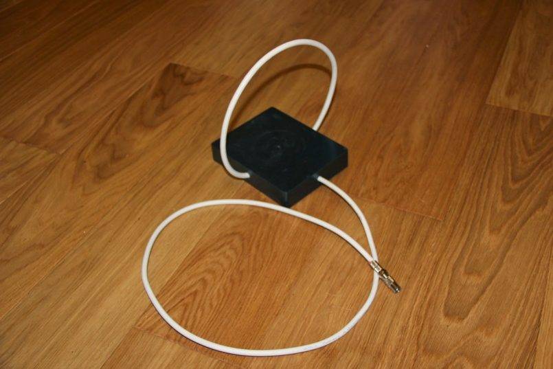 Устанавливаем рамку на основание, которое делаем из фанеры или пластика размером 10*10 см. Длина промежутка между рамочными углами в точке соединения с кабелем не должна превышать 2-х см.