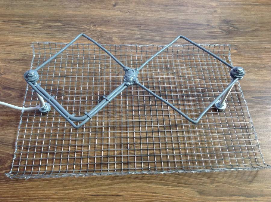Вначале займёмся рамкой устройства. Возьмём моток проволоки и отрежем от него кусок длиной 1,09 м. Затем согнём отрезанную проволоку так, чтобы в результате получилась рамка из 2-х параллельных ромбов размером 13,5*13,5 см каждый.