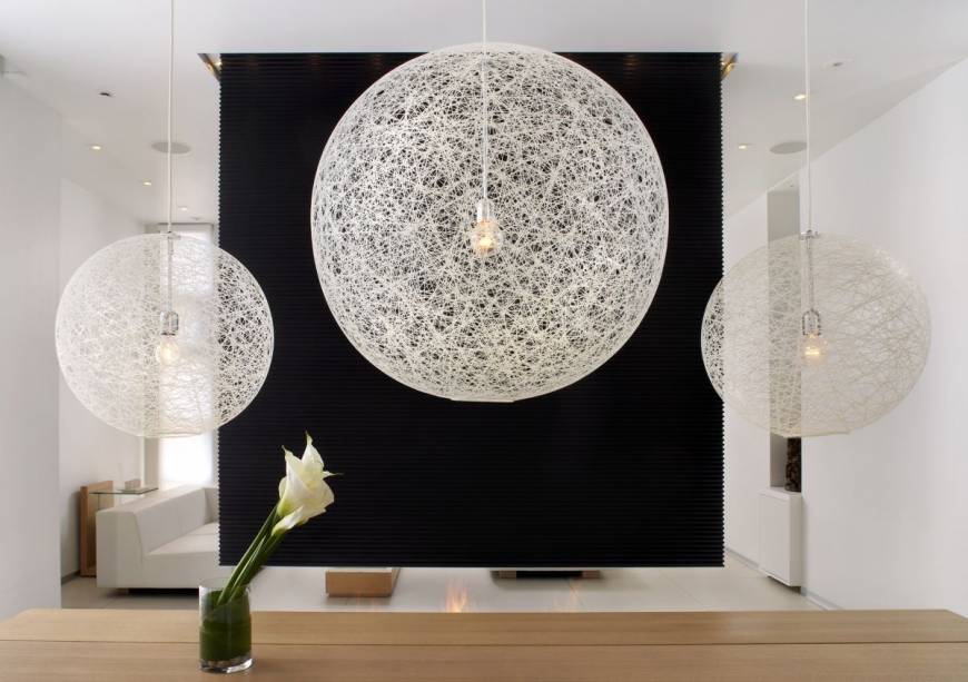 - Либо вы придерживаетесь определенных цветов, которые уже имеются в интерьере вашего помещения. Например цвет люстры можно связать с цветом мебели, какого-либо текстильного элемента или крупными предметами декора. Если в черно-белом интерьере присутствуют цветные диванные подушки, напольная ваза и другие подобные элементы, можно подбирать светильники в тон.
