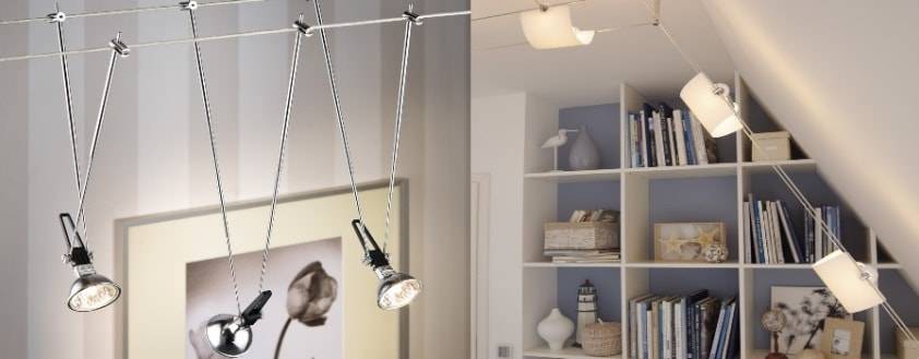 светильники на шинах. Этот тип осветительных приборов стал использоваться в качестве источника света относительно недавно. Специфика таких ламп заключается в том, что это отдельные осветительные приборы, которые установлены на общем шинопроводе. В результате этого каждый элемент подвижной системы может изменять направленность своего светового потока.