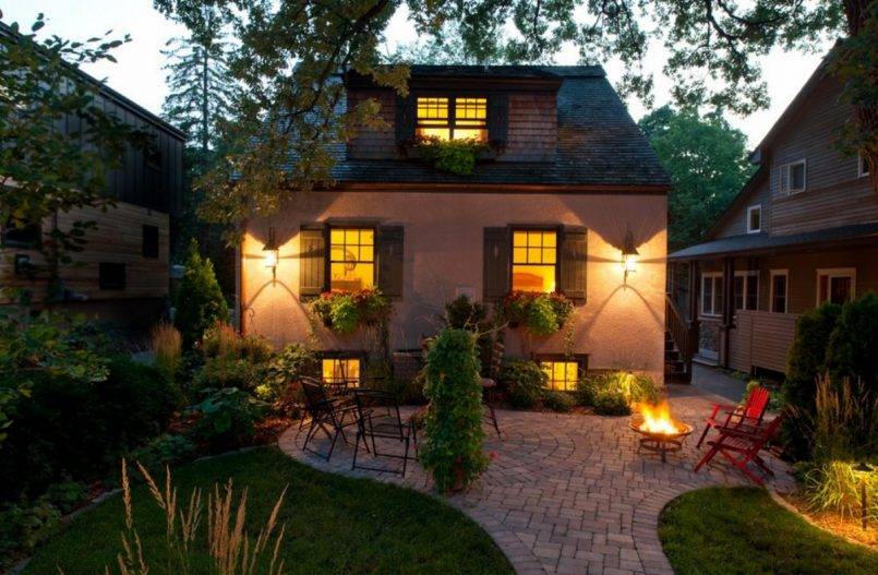 Есть еще один тип освещения, подразумевающий установку датчиков движения и фотоэлементов, которые активизируют освещение двора непосредственно после захода солнца.