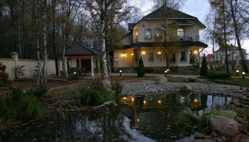 - Освещение должно гармонировать с экстерьером дома и окружающим ландшафтом, выгодно подчеркивая их преимущества. При этом сами осветительные приборы не должны бросаться в глаза.