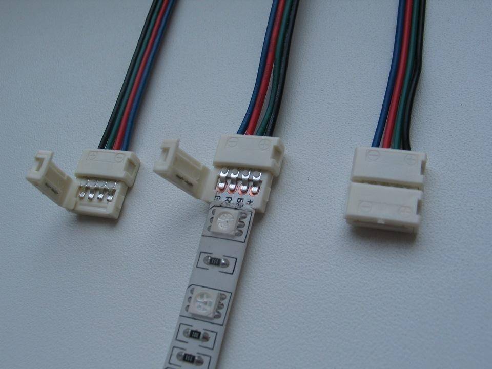 Внешне они отличаются количеством контактов. Одноцветная имеет две точки подключения, разноцветная – 4.