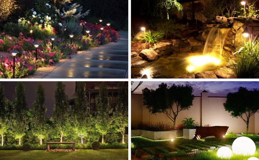 Декоративное освещения территории включает в себя установку источников света в таких местах: