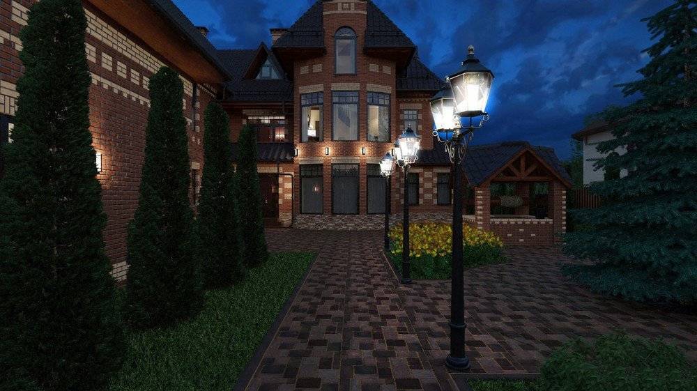 - фасад и периметр жилого дома должны быть самым освещённым местом на территории;