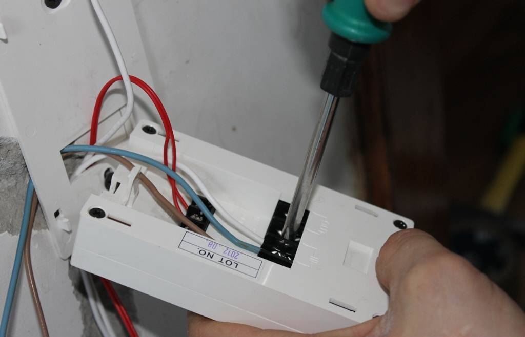 Может еще возникнуть такая ситуация, что электрический теплый пол не нагревается до необходимой температуры (установленной на регуляторе). Одна из причин поломки – слабый контакт проводов в клеммнике терморегулятора. Проверьте винтовые соединения и при необходимости подтяните их, как показано на фото. Иногда даже плохой контакт проводников может повлечь за собой такой простой вид ремонта электрического теплого пола, который не работает.