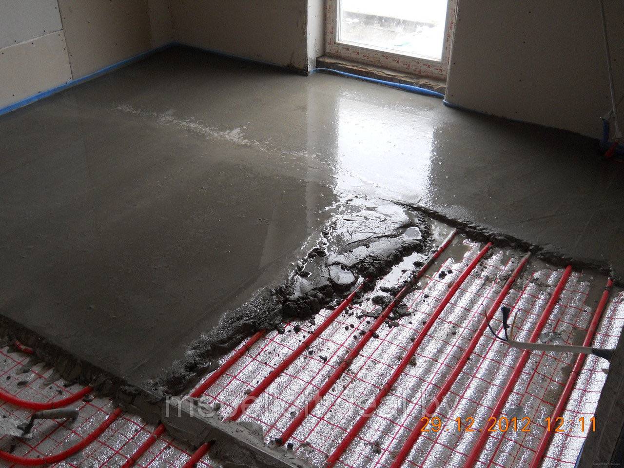 Предварительная стяжка перед укладкой водяного теплого пола.