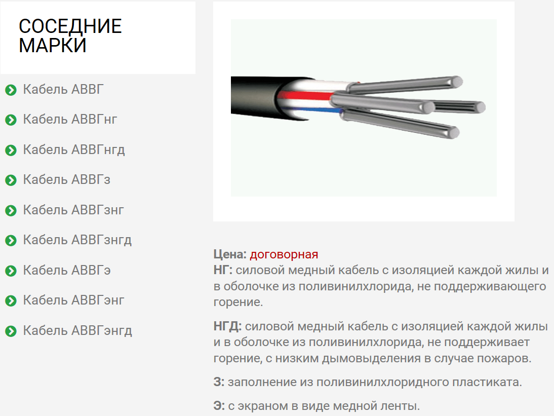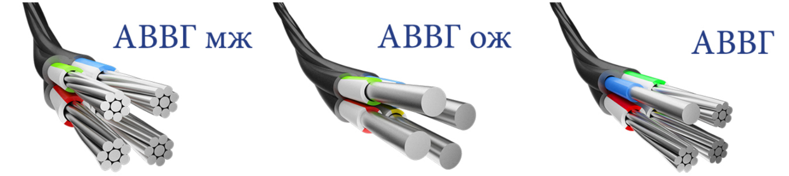 Некоторые производители кабеля АВВГ выпускают специальные его марки. Они принципиально отличаются от стандартной конструкции и условий эксплуатации. Пример таковых показан ниже: