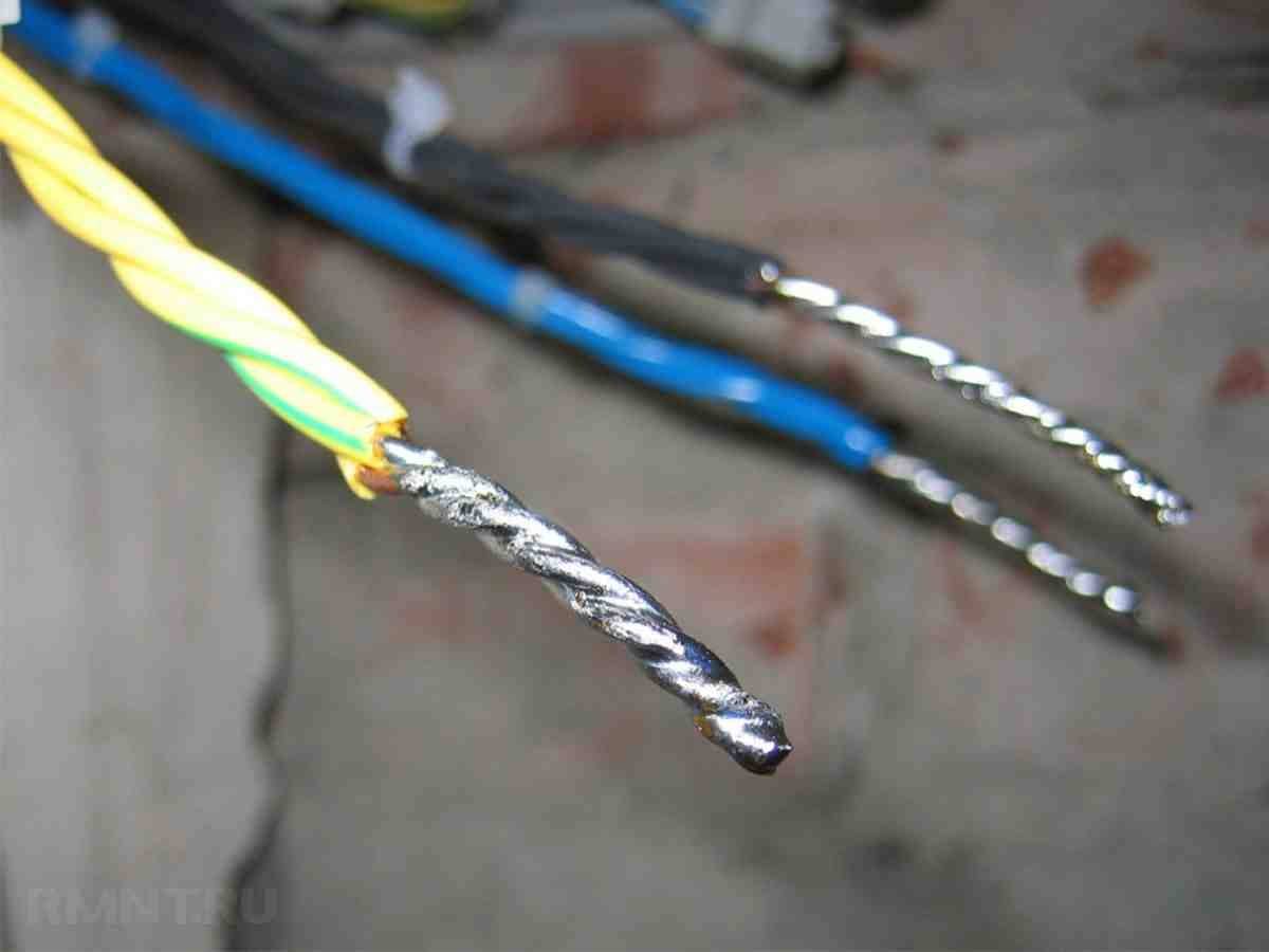 Зачищенные концы складываются параллельно, в один пучок. Концы выравниваются вместе, крепко держатся рукой за изолированную часть и весь пучок скручивается плоскогубцами. После этого скрутка пропаивается или сваривается.