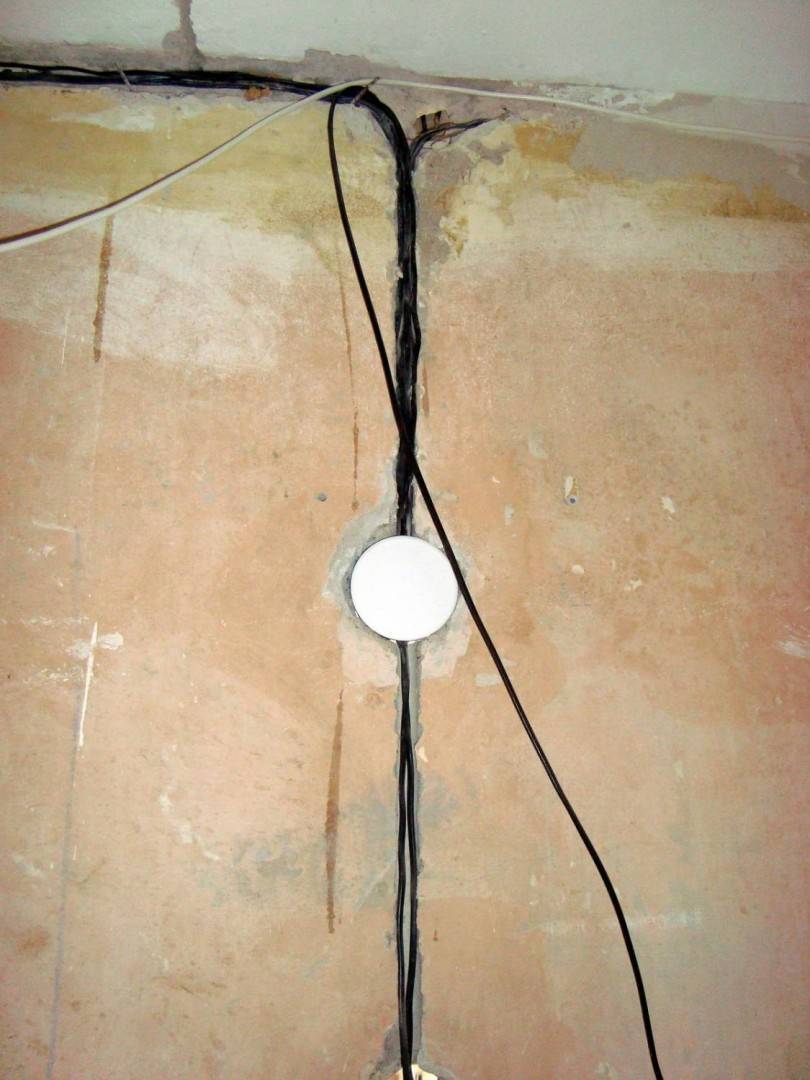 Нередко используют комбинированный вид укладки, когда важные соединения оставляют на виду, а остальные провода прячут в штробы.