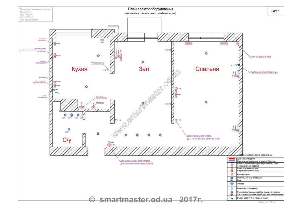 Примеры планов проводки, необходимых для начала электромонтажа: