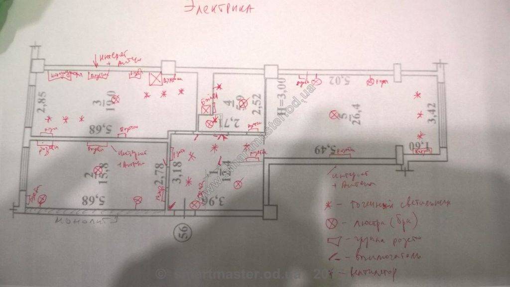 Схема размещения электрического оборудования в интерьере большой квартиры
