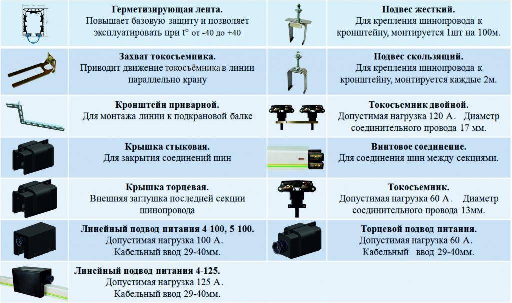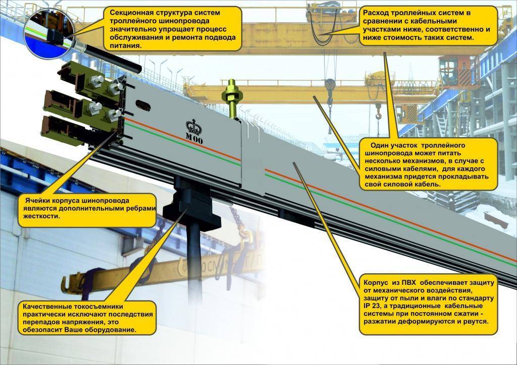 Отвечают за бесперебойную подачу электроэнергии для подвижных электрических приемников. Активно используются для монорельсов, подъемных кранов, талей и задействованы в различного рода передвижных системах.
