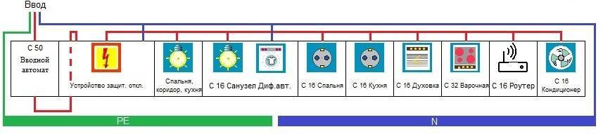 Типовая схема распределительного щита однокомнатной квартиры