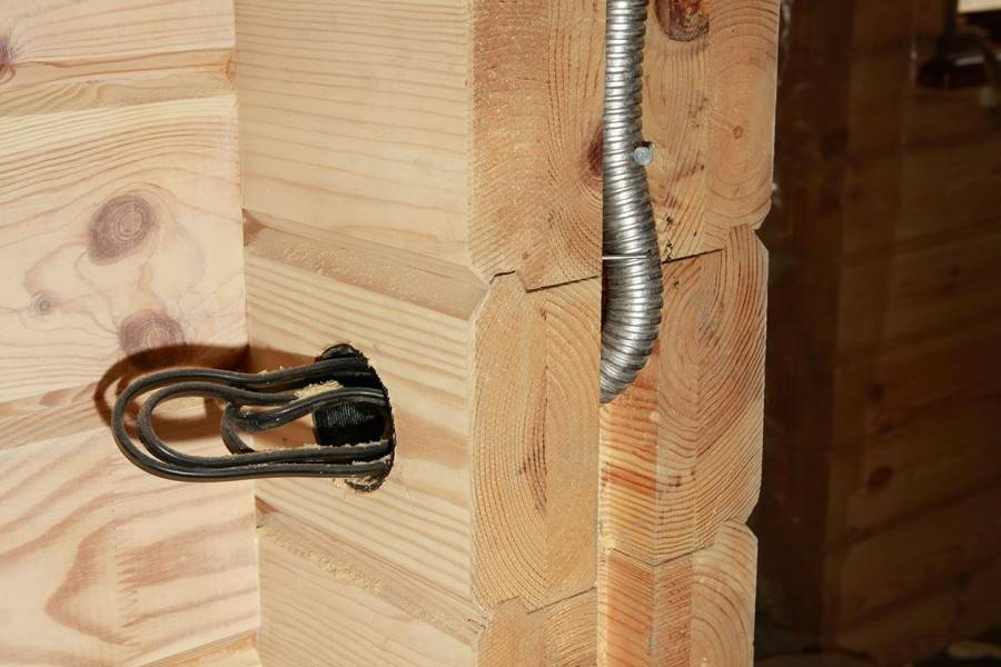 Правила техники пожарной безопасности запрещают штробить стены в деревянных зданиях, это касается и бань. При коротком замыкании возникает риск воспламенения стен от проложенной в них электропроводки. В этом случае используются специальные кабель-каналы.