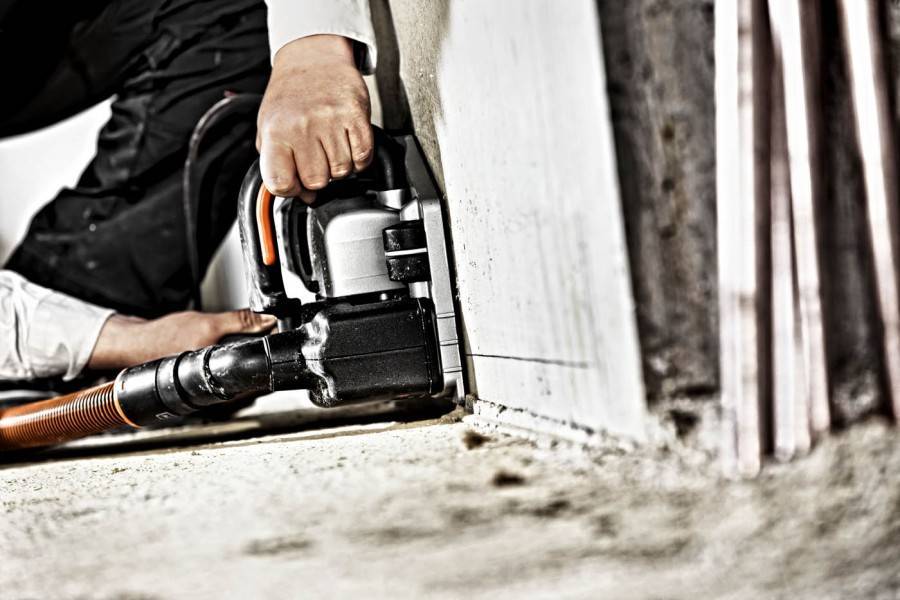 Всасывающая труба промышленного пылесоса может быть установлена в специальный отвод, который сделан в кожухе. В результате срезы и дно канала получаются ровными. Электрический кабель не будет поврежден при укладке.