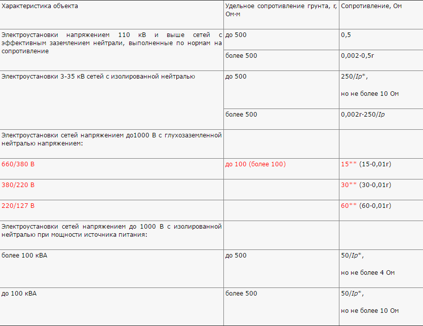 При необходимости это значение может снижаться путём увеличения площади контакта с землёй или изменения электрической проводимости грунта.