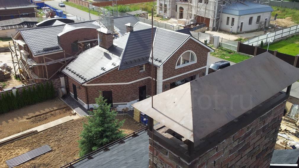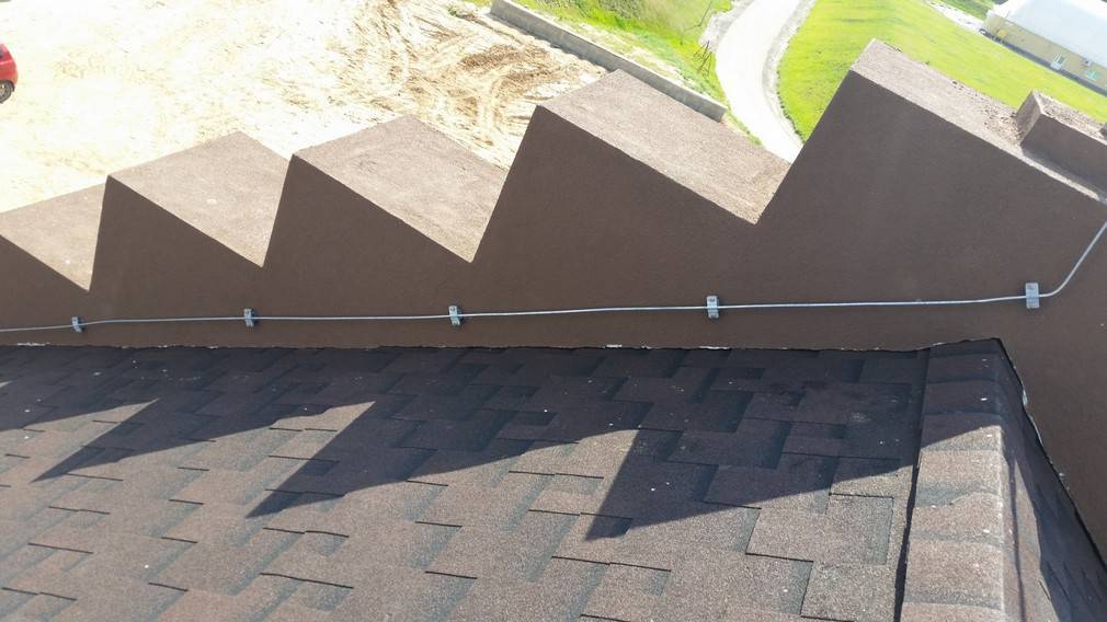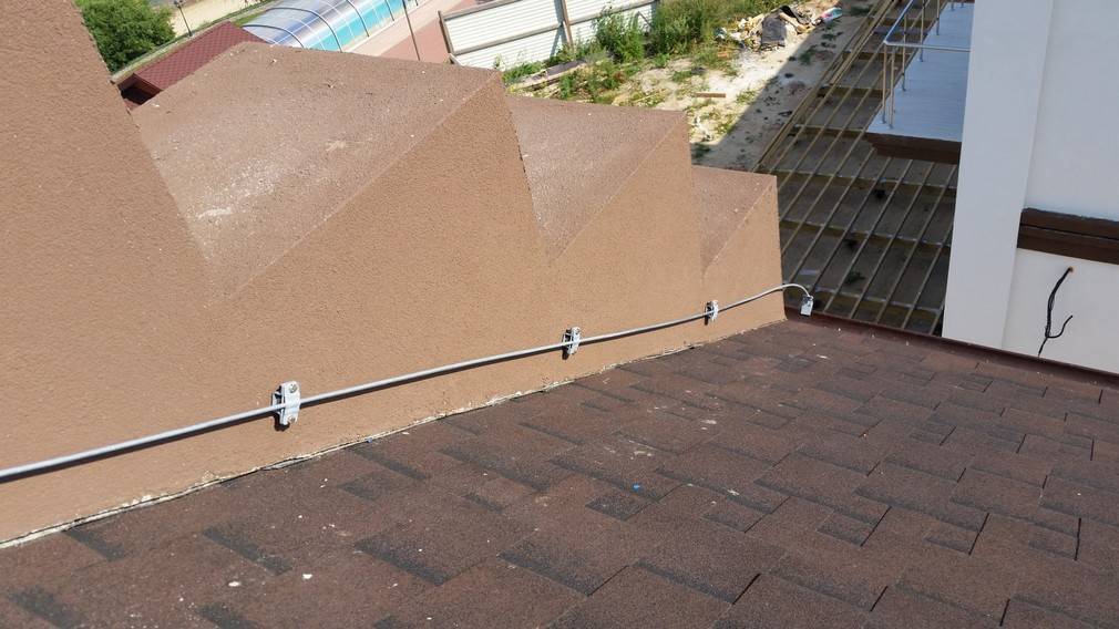 С учетом советов, в подходящем месте на крыше устанавливается молниеприемник.