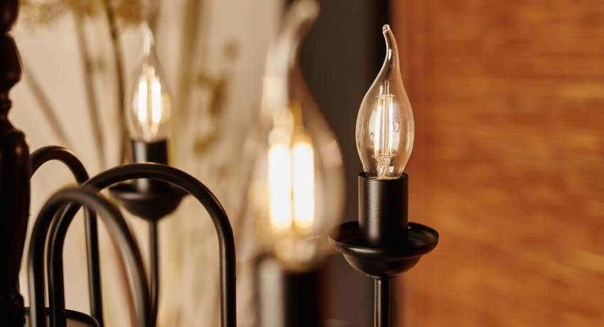 - филаментные изделия в виде шара или свечи, мощностью 5Вт, с величиной светового потока 420-450 лм;