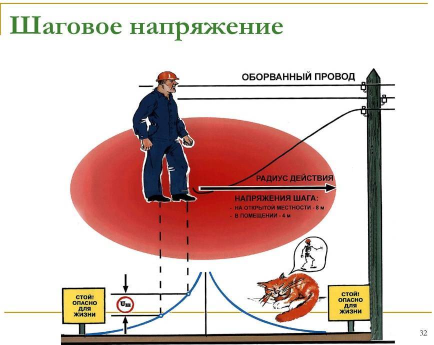 Для того, чтобы предупредить вредное воздействие шагового напряжения, необходимо провести расчет. Он поможет вычислить размер диапазон и его силу.