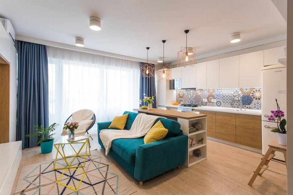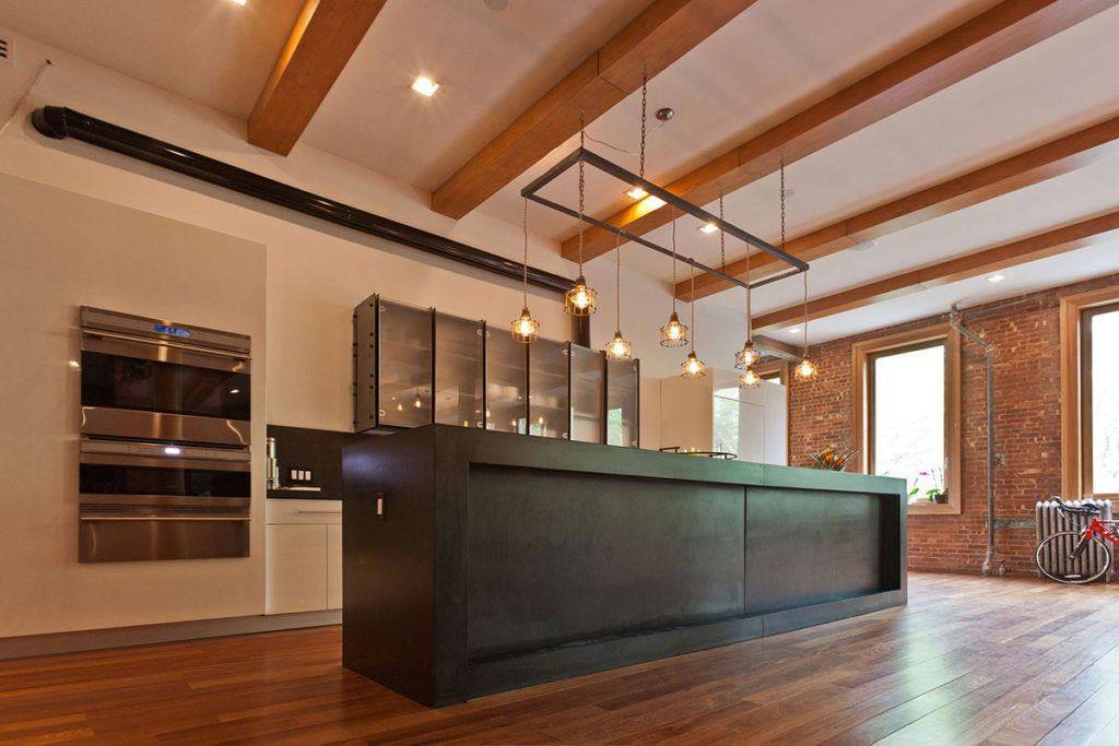 Рабочая зона кухни требует дополнительной подсветки. Свисающие с потолка лампы Эдисона создадут необходимый уровень освещенности и оживят интерьер.
