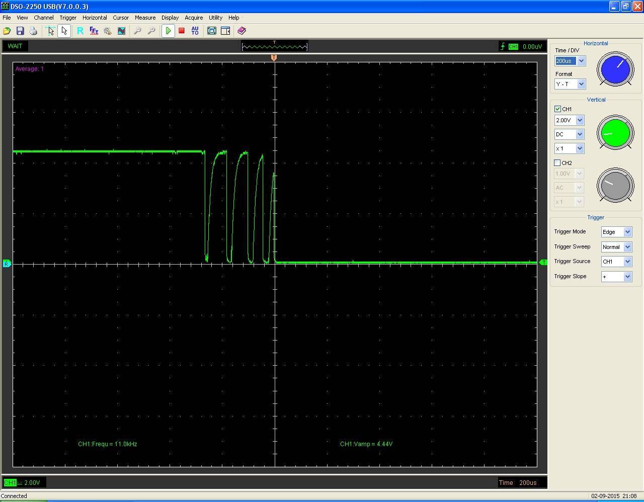 Установив конденсатор на 1 мкФ параллельно кнопке для его подавления, получаем стабильное и точное срабатывание: