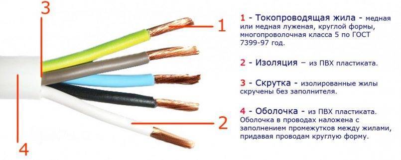 - Для прокладки под землей: ВВГ (круглый, до четырех жил с двойной изоляцией)