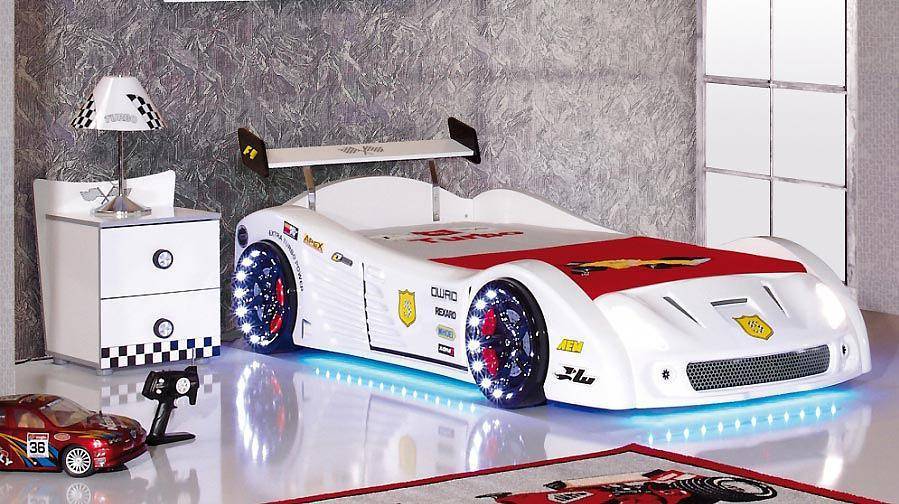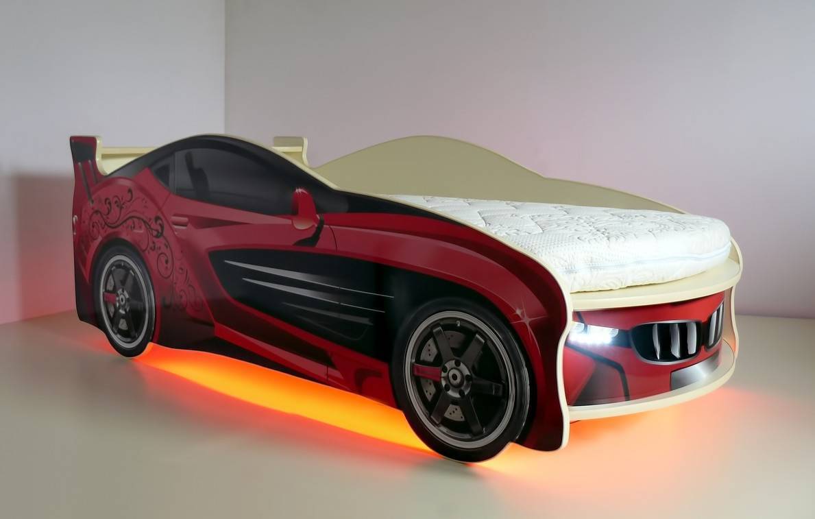 Для мальчиков разработаны самые разнообразные кровати машины, которые помогут малышу представить себя в роли гонщика. Наилучшим вариантом станет кровать, оснащенная подсветкой. Очень интересно будет спать в машине со светящимися фарами и габаритами.