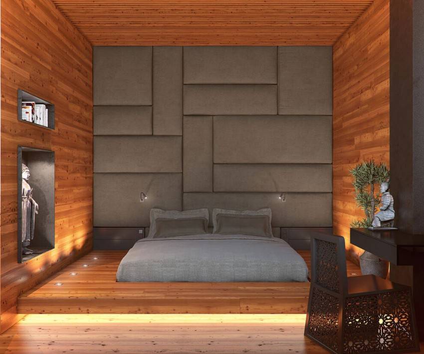 Кровать подиум смотрится эффектно и стильно. Кроме того, она помогает значительно сэкономить пространство. А если добавить к данной мебели подсветку, то в темноте будет создаваться «эффект парения». Это еще и удобно, поскольку в ночное время суток будет исключена вероятность падения за счет освещения ступени.