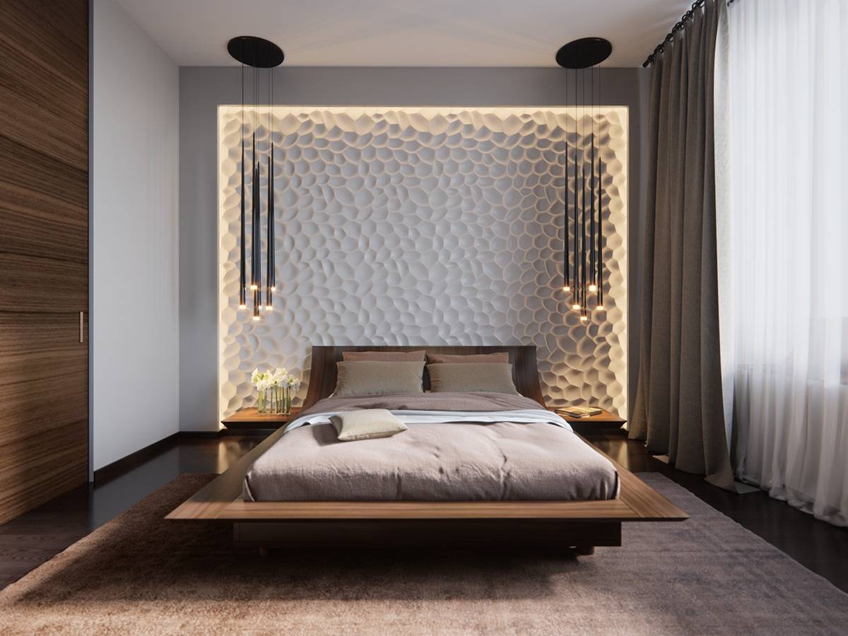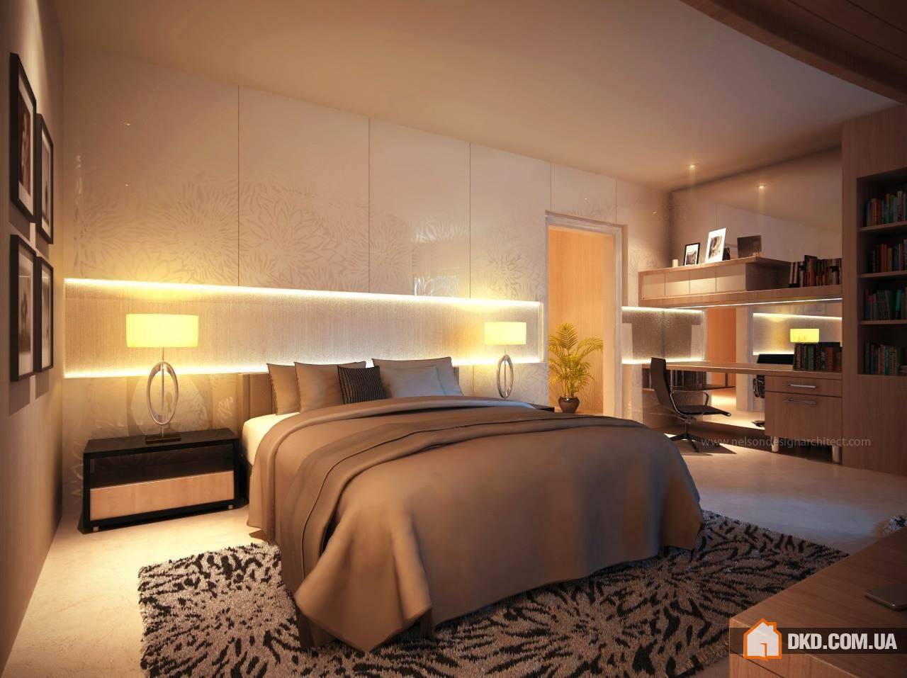 В спальне главным атрибутом является кровать. Поэтому и освещение должно главным образом акцентировать этот предмет мебели. Лучшим вариантом станет организация подсветки в этой зоне