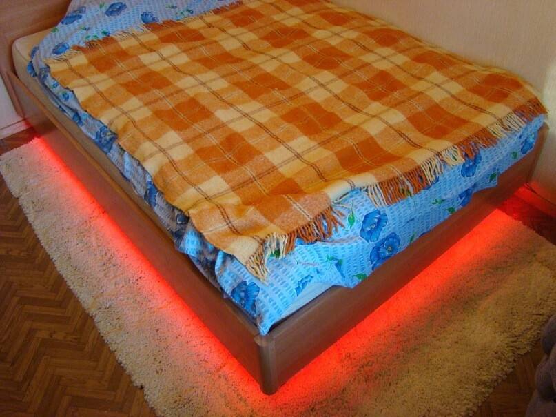 | Установка многоцветной RGB светодиодной ленты на кровать. |