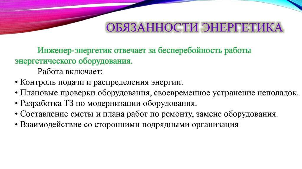 Аудиторы – анализируют потребление и расход электроэнергии, разрабатывают эффективные меры по снижению потерь и т.д.