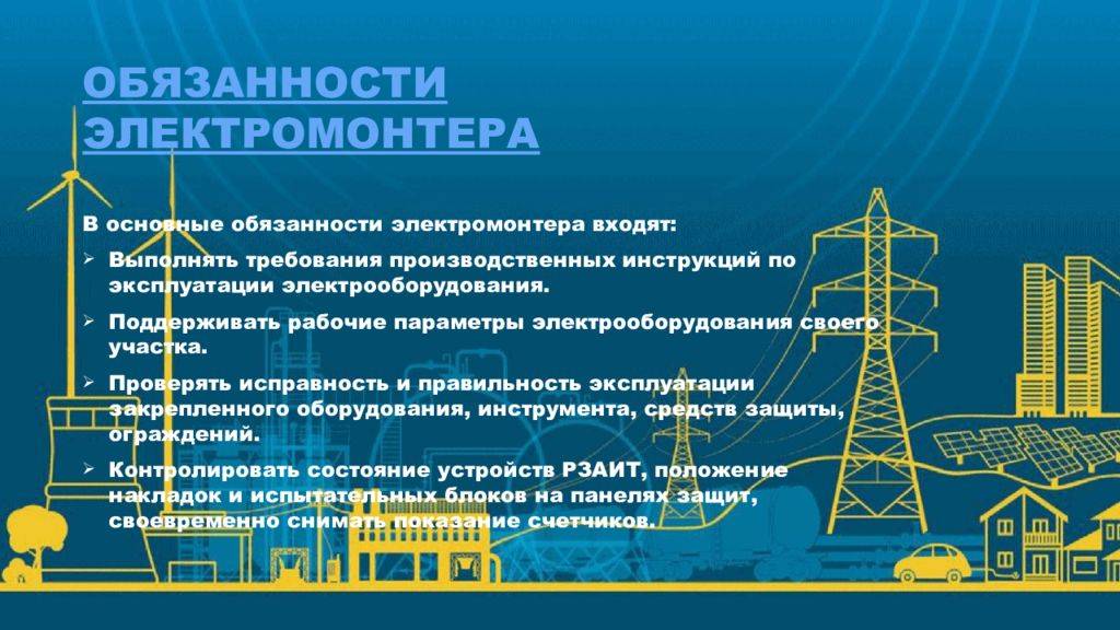 Независимо от места работы, в обязанности электромонтера входят несколько действий. Он должен: