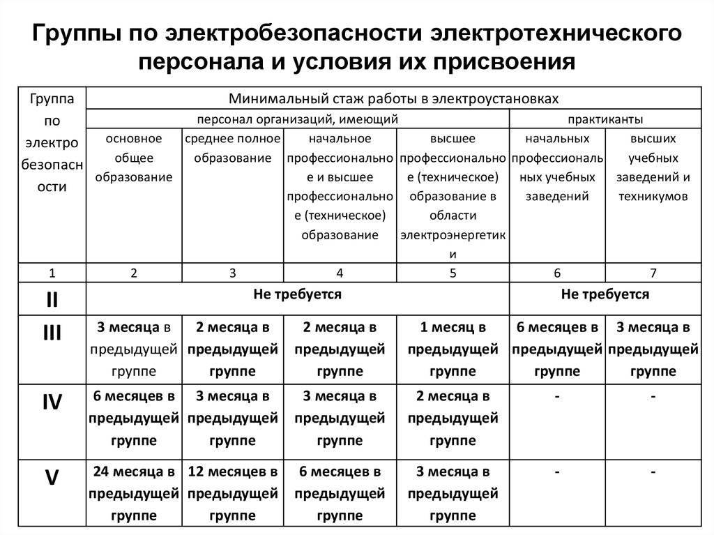 - уровню допуска – определяет соответствие знаний работника и навыков в части охраны труда и электробезопасности, которые обязательно учитываются при обслуживании устройств и определяют возможность выполнения тех или иных категорий работ.