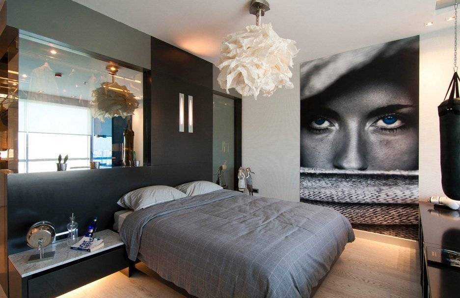 Спальня в стиле лофт предполагает грубую отделку в виде кирпичной кладки, штукатурки, состаренного дерева или бетонного покрытия. Поэтому многие люди считают, что такую обстановку нужно дополнить соответствующим светильником, отличающимся лаконичностью. Однако в лофтовое пространство может идеально вписаться роскошная многоярусная конструкция из хрусталя, которая еще больше подчеркнет индустриальность дизайна.