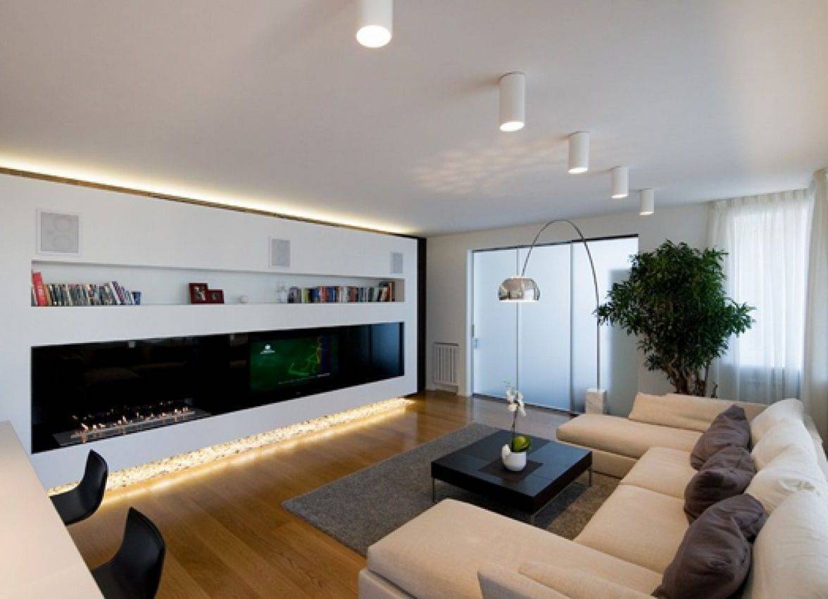 Оттенок освещения. Дизайнеры с мировым именем уверяют, что холодные лампы искажают все оттенки в комнате. Поэтому лучше всего использовать лампочки с тёплым светом или с нейтральным. Первый вариант красиво подчёркивает мягкость оттенков тёплый гаммы. Натуральный свет деликатно выделяет все цвета холодной гаммы. Оптимальным будет сочетание двух видов света в гостиной.