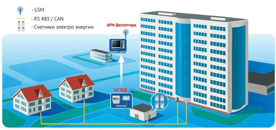 Еще один рисунок показывает схему АСКУЭ многоэтажного дома: