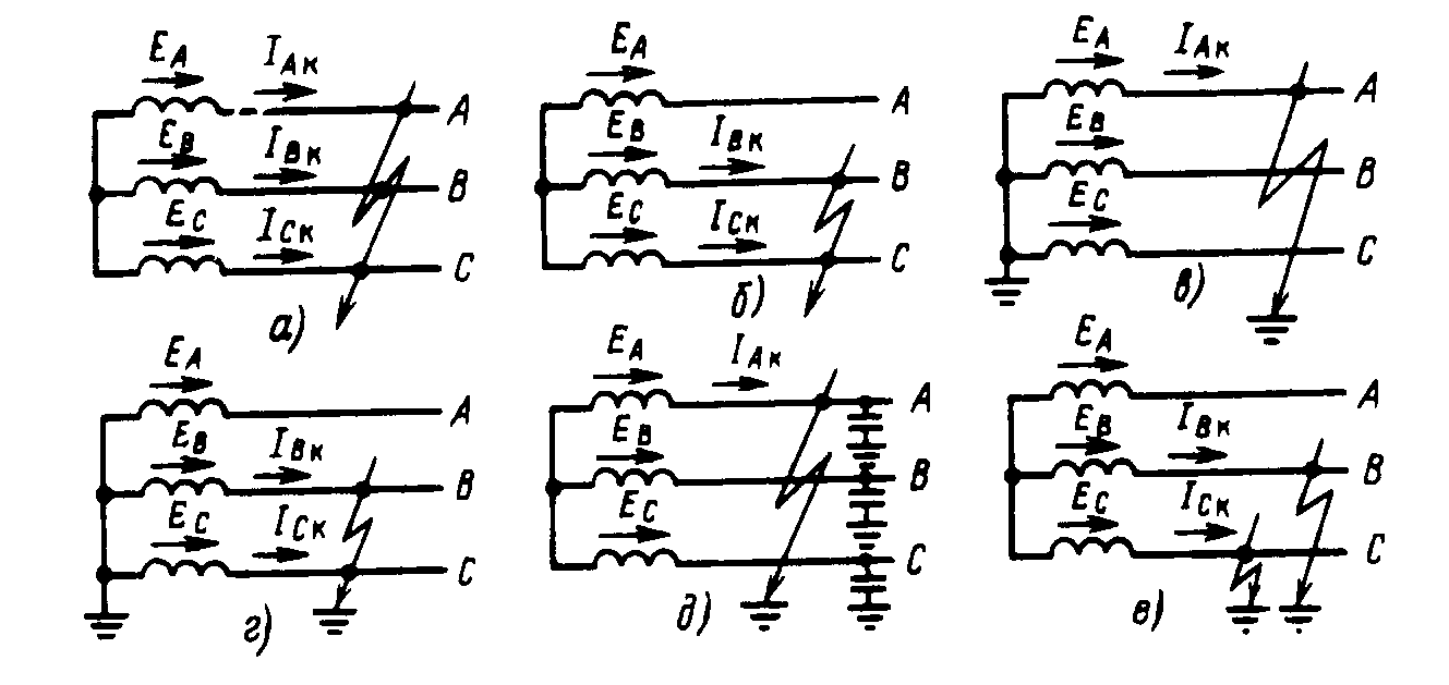 Коротким замыканием называется всякое замыкание между проводами, или между проводом и землей. Причиной возникновения короткого замыкания является нарушение изоляции в электрических проводах и кабелях, которое вызывается: перенапряжениями; старением изоляции; механическими повреждениями изоляции. При возникновении замыкания в цепи ее общее сопротивление уменьшается, что приводит к увеличению токов в ее ветвях по сравнению с токами нормального режима.